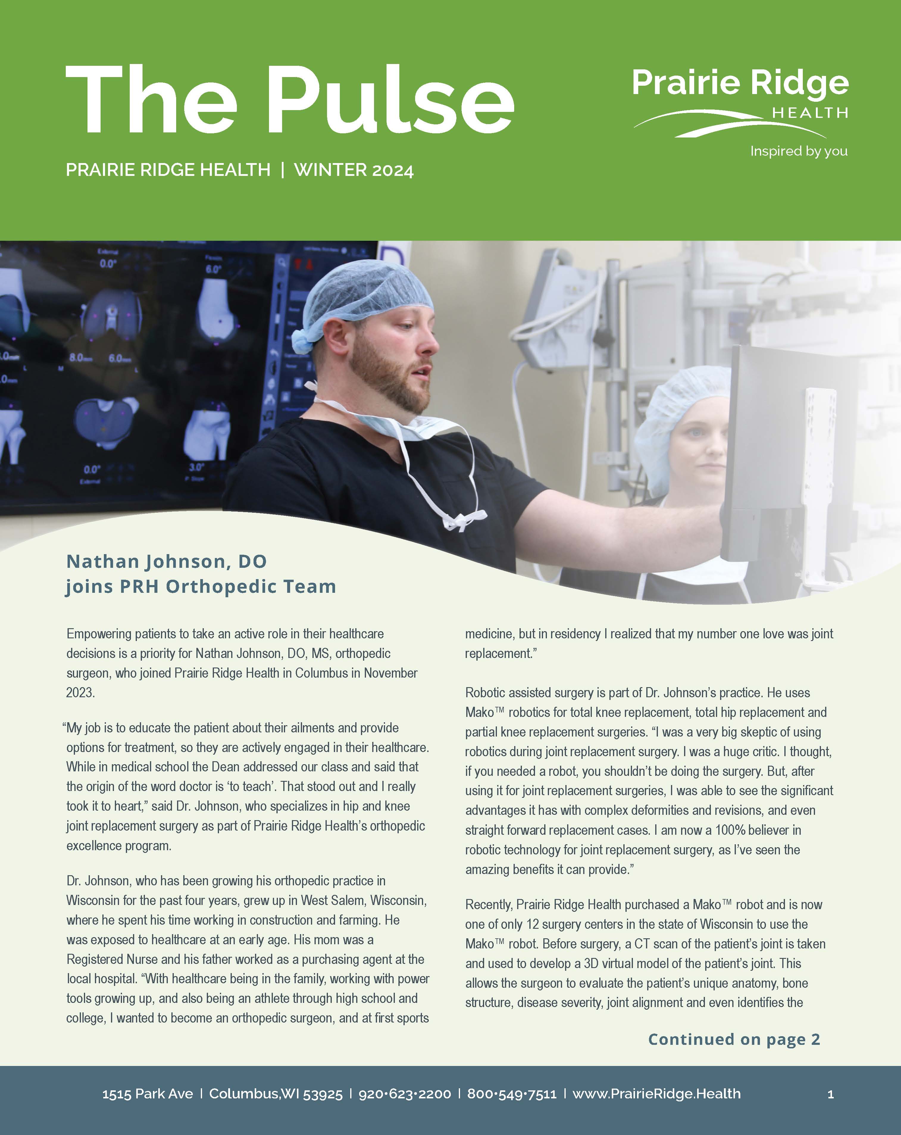 To be added to our mailing list contact the Marketing office at 920-623-1280 or Marketing@PrairieRidge.Health