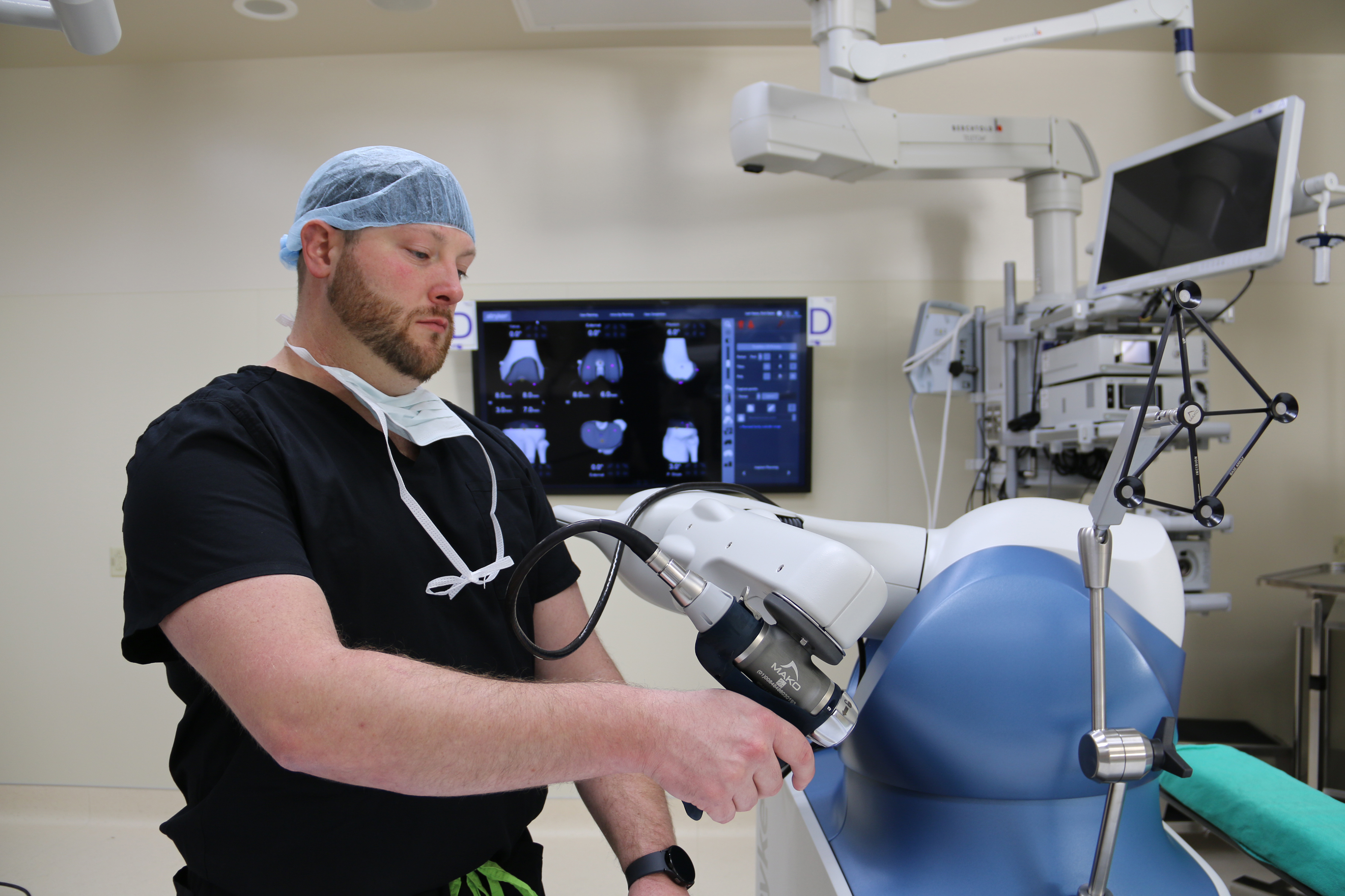 “It is robotic ASSISTED surgery,” explained Dr. Johnson. “The robot can only do what I tell it and when I tell it. The technology allows me to plan the surgery (what size implants, where to put them, any deformities). I can make adjustments on the fly as well based on how your anatomy looks intraoperatively. Robotics allows me to do the surgery more accurately and precisely, with cuts being within a ½ a millimeter, which is incredible.”