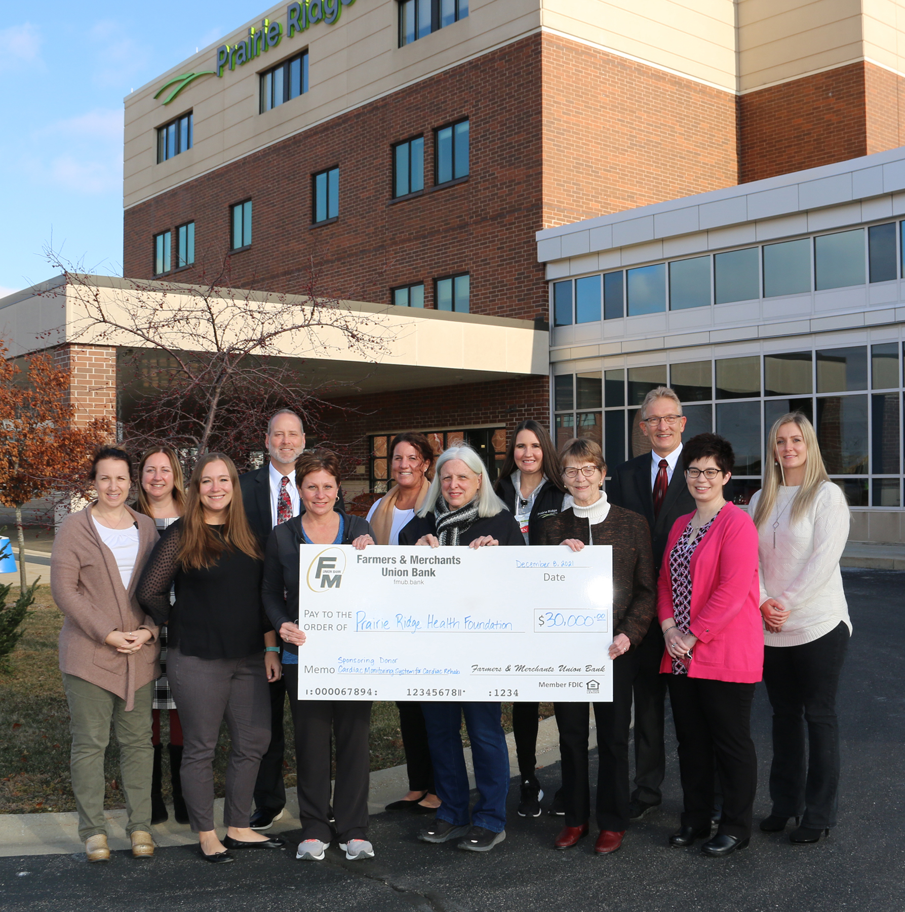 Farmers & Merchants Union Bank in Columbus donated $30,000 to the Prairie Ridge Health (PRH) Foundation to fully fund a new cardiac central monitoring system for the PRH Cardiac Rehabilitation Program in support of the PRH Foundation’s 2021 Heart Healthy Community Appeal.