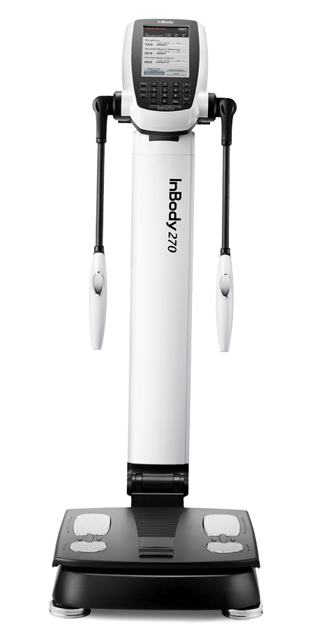 InBody measures your body’s muscle, fat and water levels in less than a minute! The test provides detailed information that will help you customize nutrition and lifestyle changes to help you reach your fitness and/or athletic performance goals. Optimal amounts of muscle and fat are more important for health than weight alone.